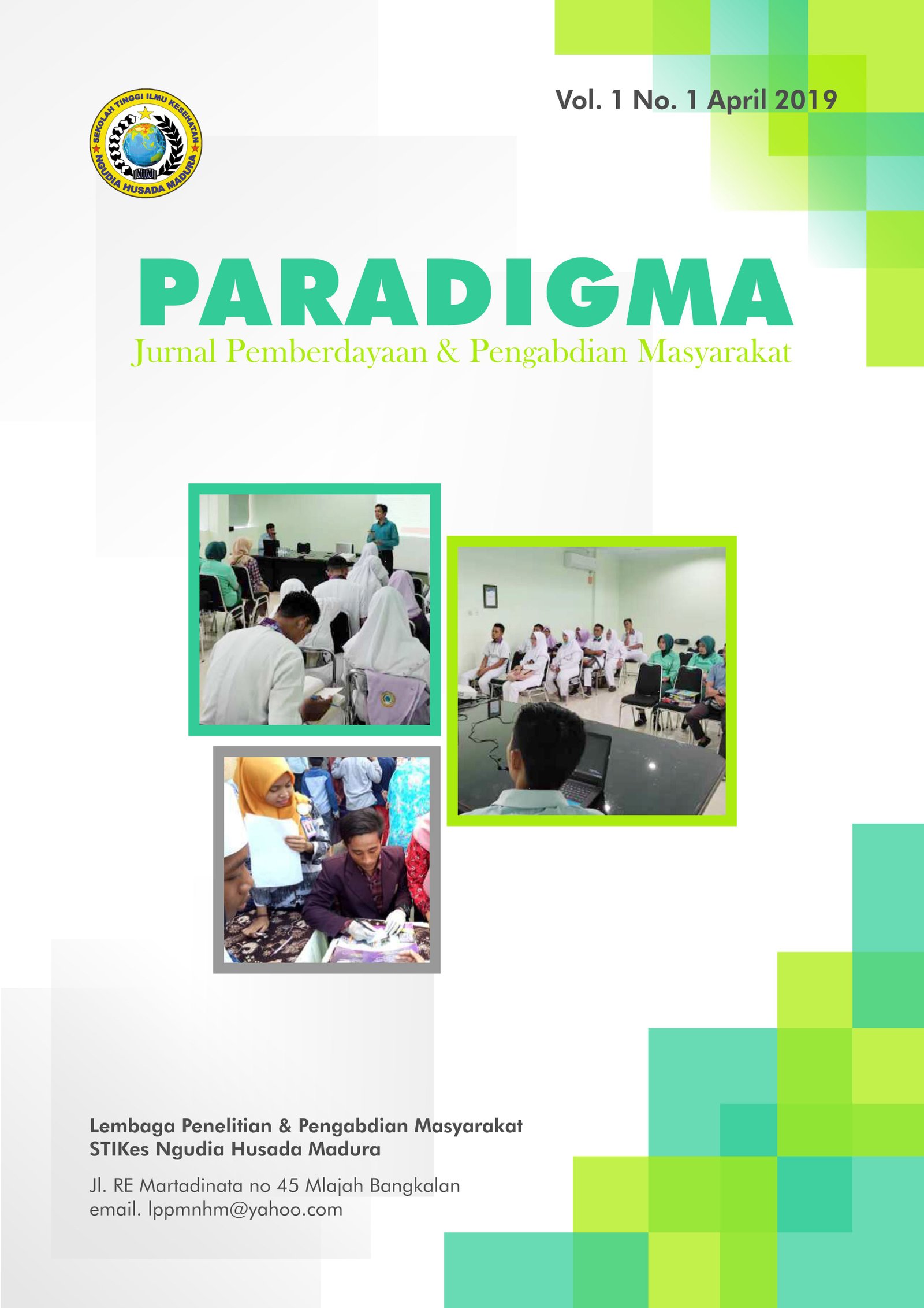 Jurnal Paradigma (Pemberdayaan & Pengabdian Masyarakat) is a publication forum for community service activities in the health sector. The articles presented in this journal result from the implementation or application of various health disciplines such as nursing, midwifery, medical analysis, and public health which aim to solve problems and provide services to the community. As the journal manager, STIKes Ngudia Husada Madura Research & Community Service Institute publishes two journal editions annually, namely in April and October. This journal already has an e-ISSN number: e-ISSN : 2807-923X dan p-ISSN : 2807-9396.