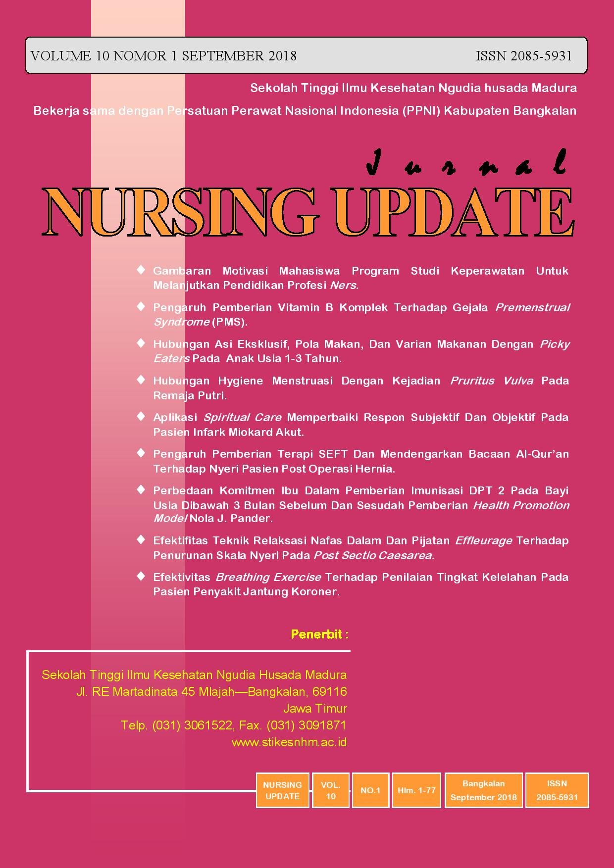 Abdillah, A. (2019). PENGARUH PEMBERIAN TERAPI SEFT DAN MENDENGARKAN BACAAN AL-QUR’AN TERHADAP NYERI PASIEN POST OPERASI HERNIA. NURSING UPDATE : Jurnal Ilmiah Ilmu Keperawatan P-ISSN : 2085-5931 E-ISSN : 2623-2871, 10(1), 41–49. https://doi.org/10.36089/nu.v1i1.35